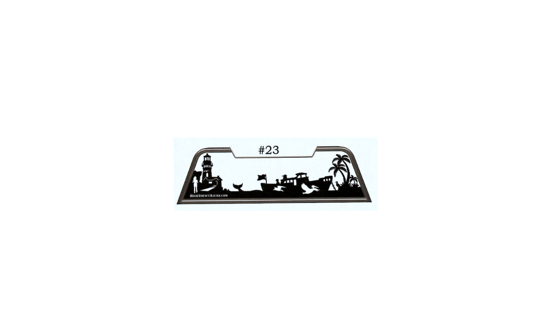 Bring the serenity of the sea to your truck with our Coastal Life #023 back window rack. Crafted from 1/8″ steel and framed with 1 1/2″ tubing, this rack captures a picturesque oceanfront scene. Featuring a lighthouse, a fishing boat, palm trees, seagulls, and a whale’s tail emerging from the water, this design is perfect…