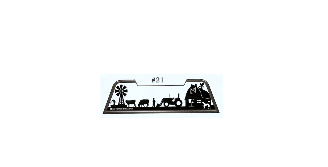 Celebrate the heart of rural living with our Farm Life #021 back window rack. Precision-cut from 1/8″ steel and framed with 1 1/2″ tubing, this design beautifully depicts classic farm elements, including a windmill, cattle, a farmer, a tractor, and a rustic barn complete with a weather vane and a horse. Perfect for farmers, ranchers,…