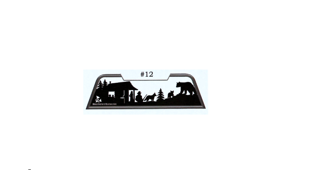 Step into a scene of wild encounters with our Wilderness Encounter #012 back window rack. Constructed from durable 1/8″ steel and supported by 1 1/2″ tubing, this rack portrays a vivid tableau of wilderness life. It features a family of bears exploring near a rustic cabin, watched over by an observer with a dog, set…